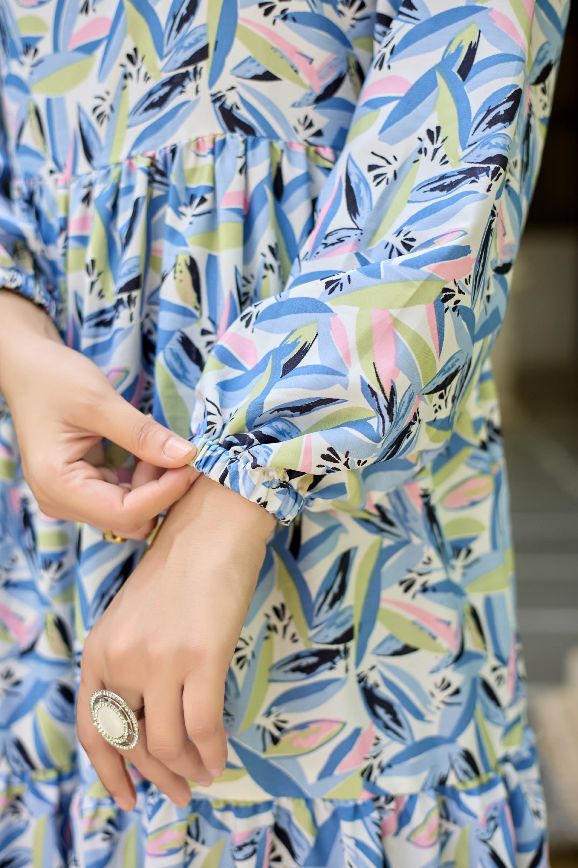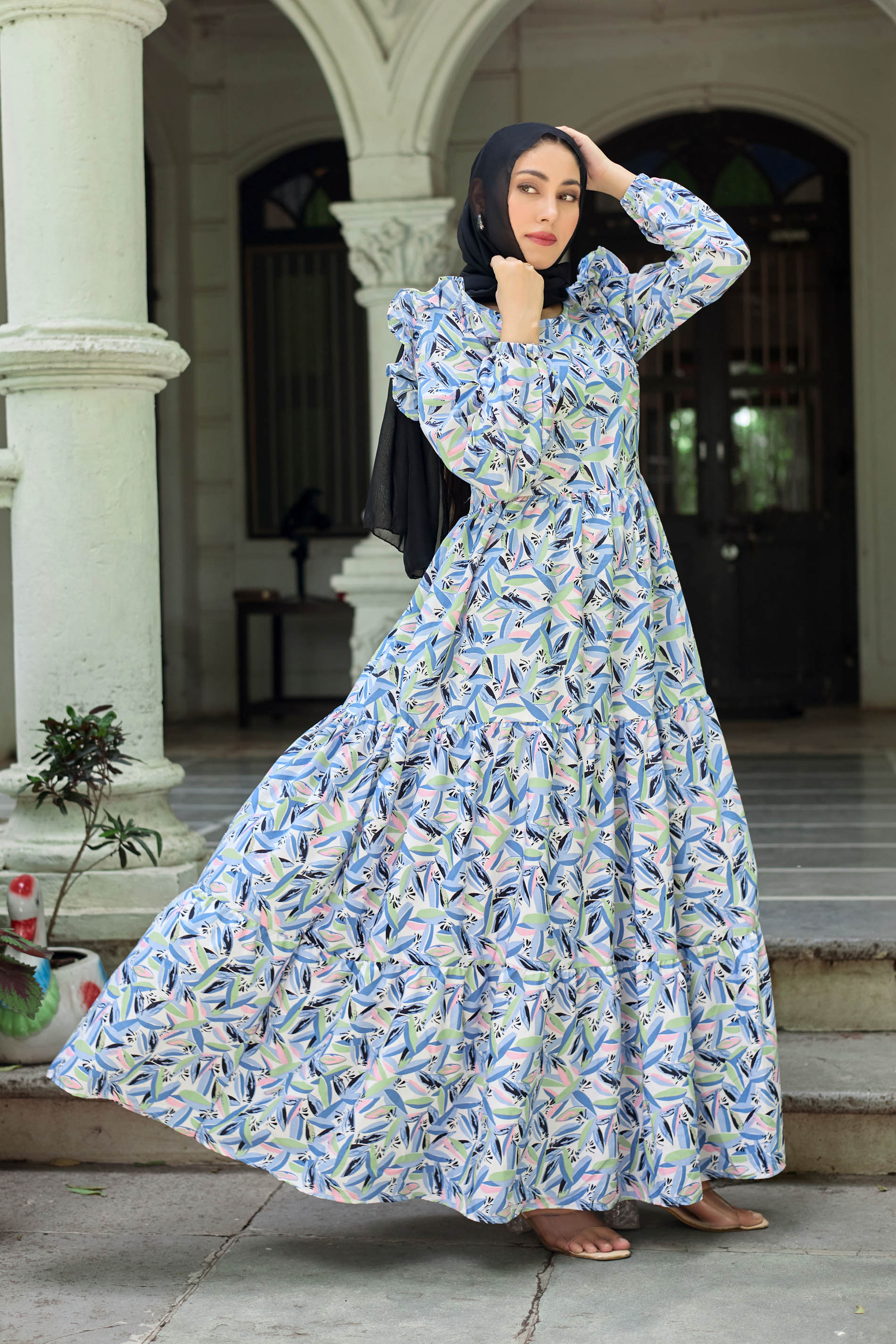 Elegant Geometric Printed Long Maxi Dress for Women | Full Sleeve Party & Casual Wear