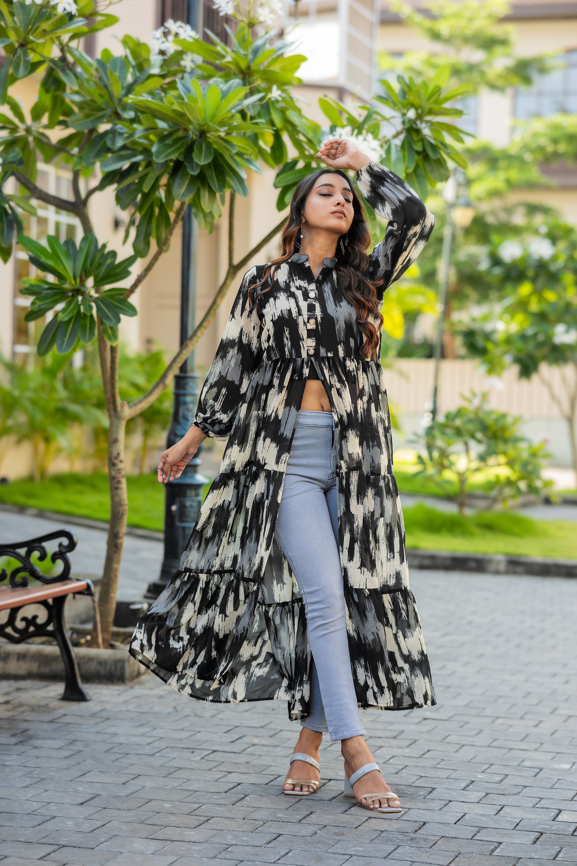 GEORGET PRINTED BLACK KURTI