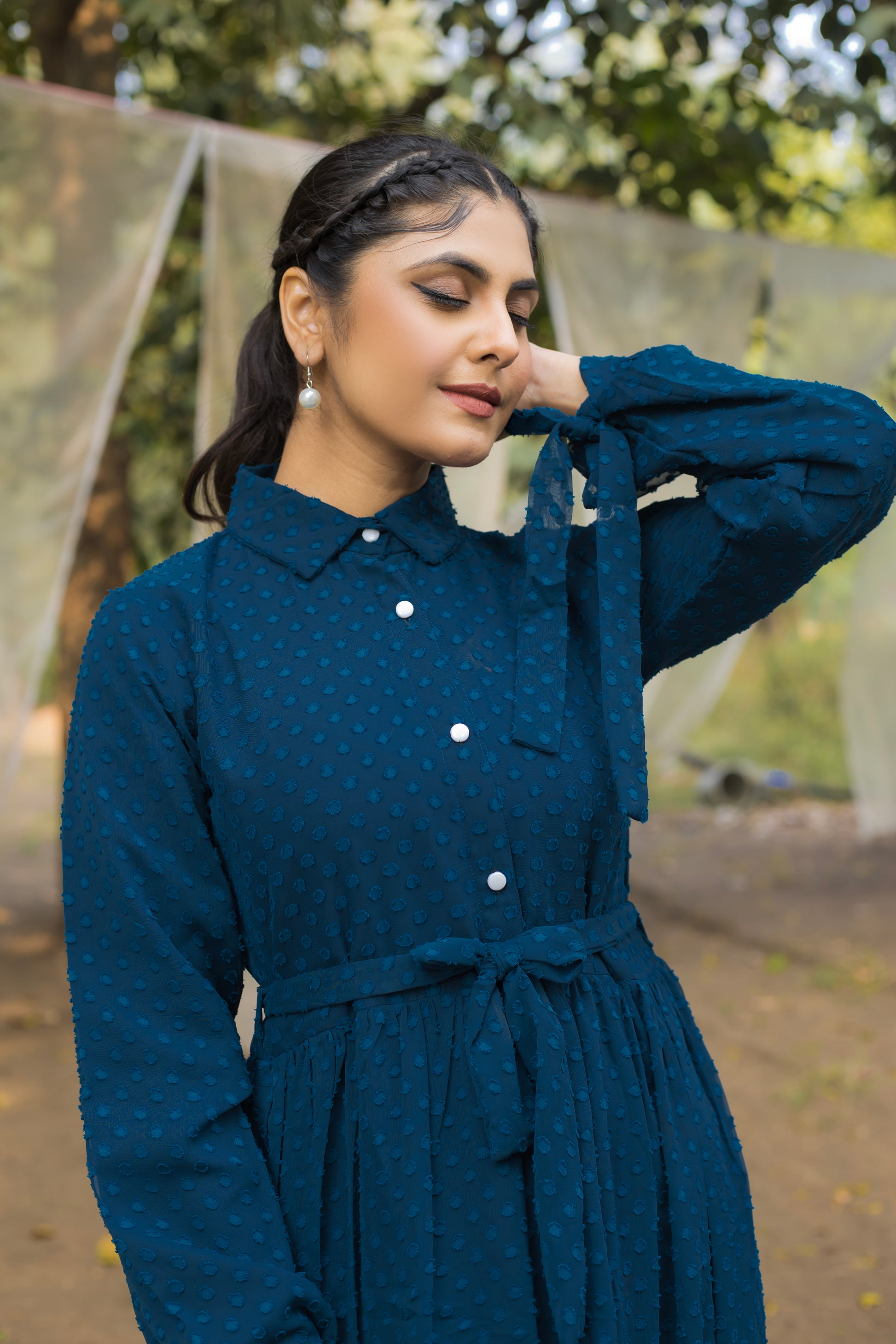Pattern: small stitch finishing with Stylish shirt-collar and umbrella FRILL detailing,