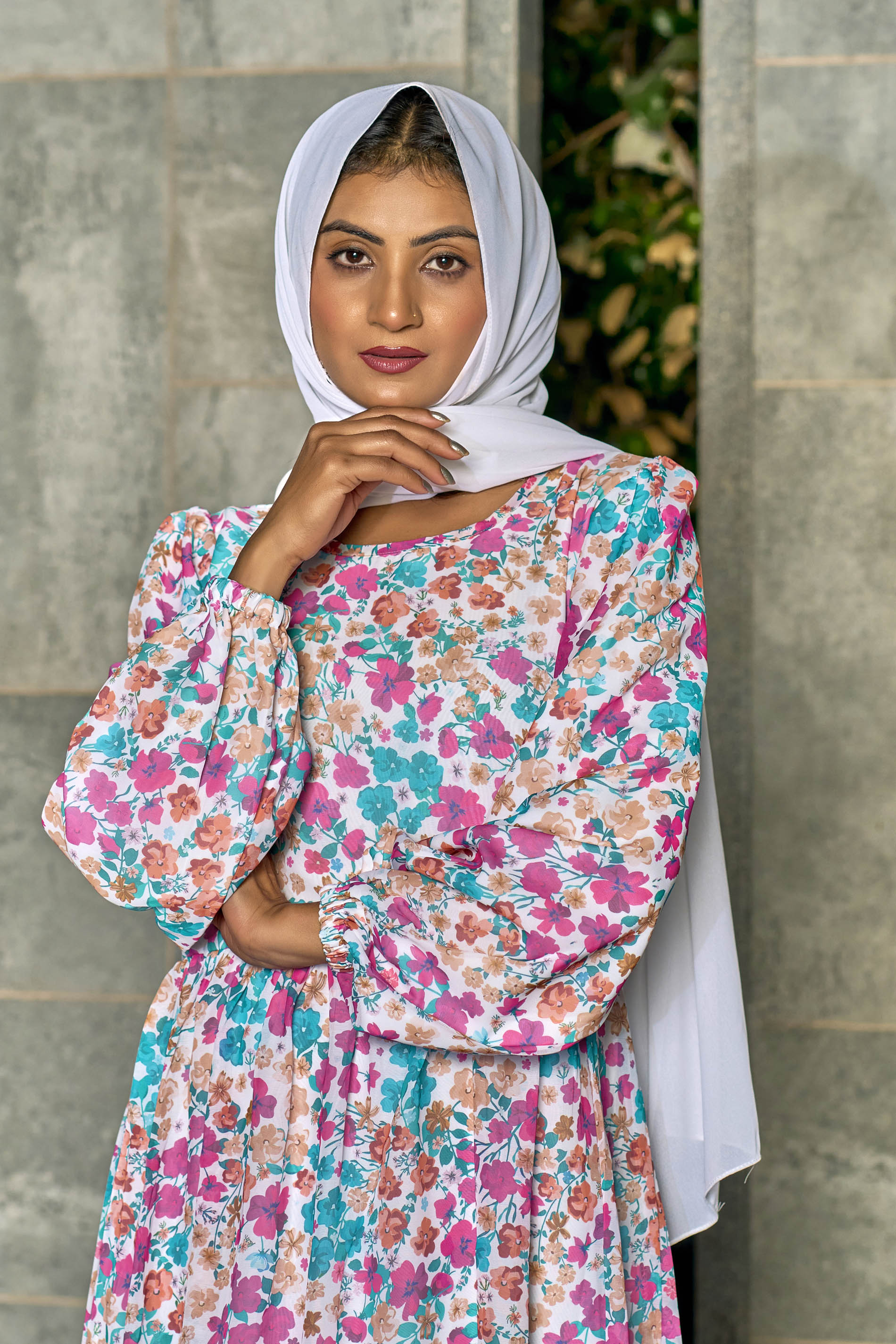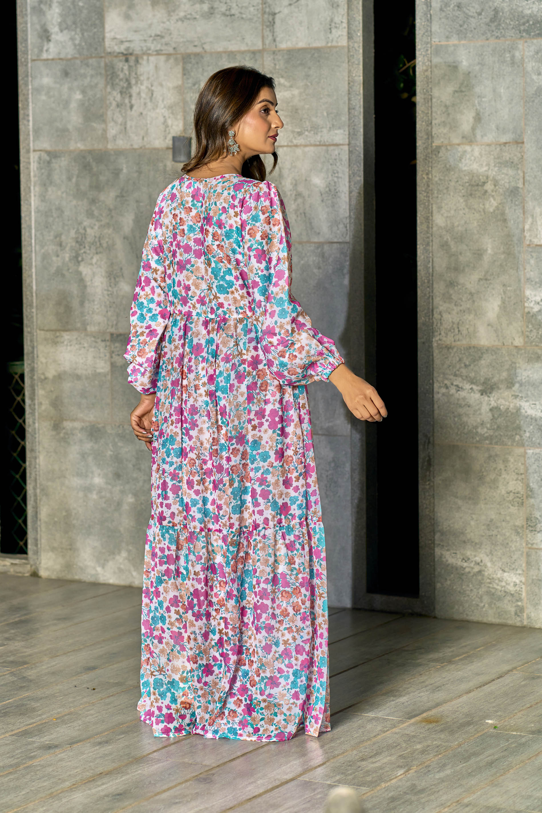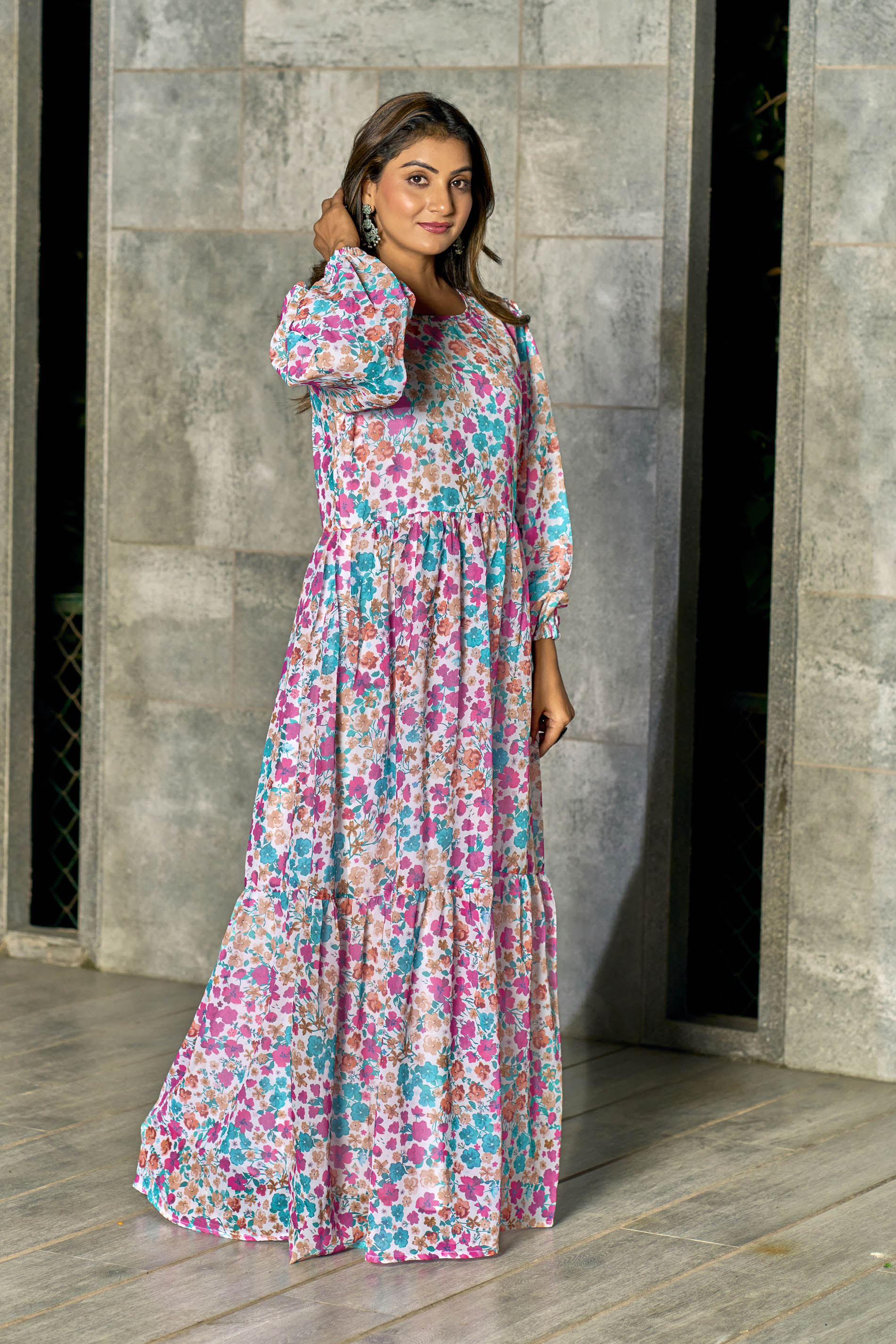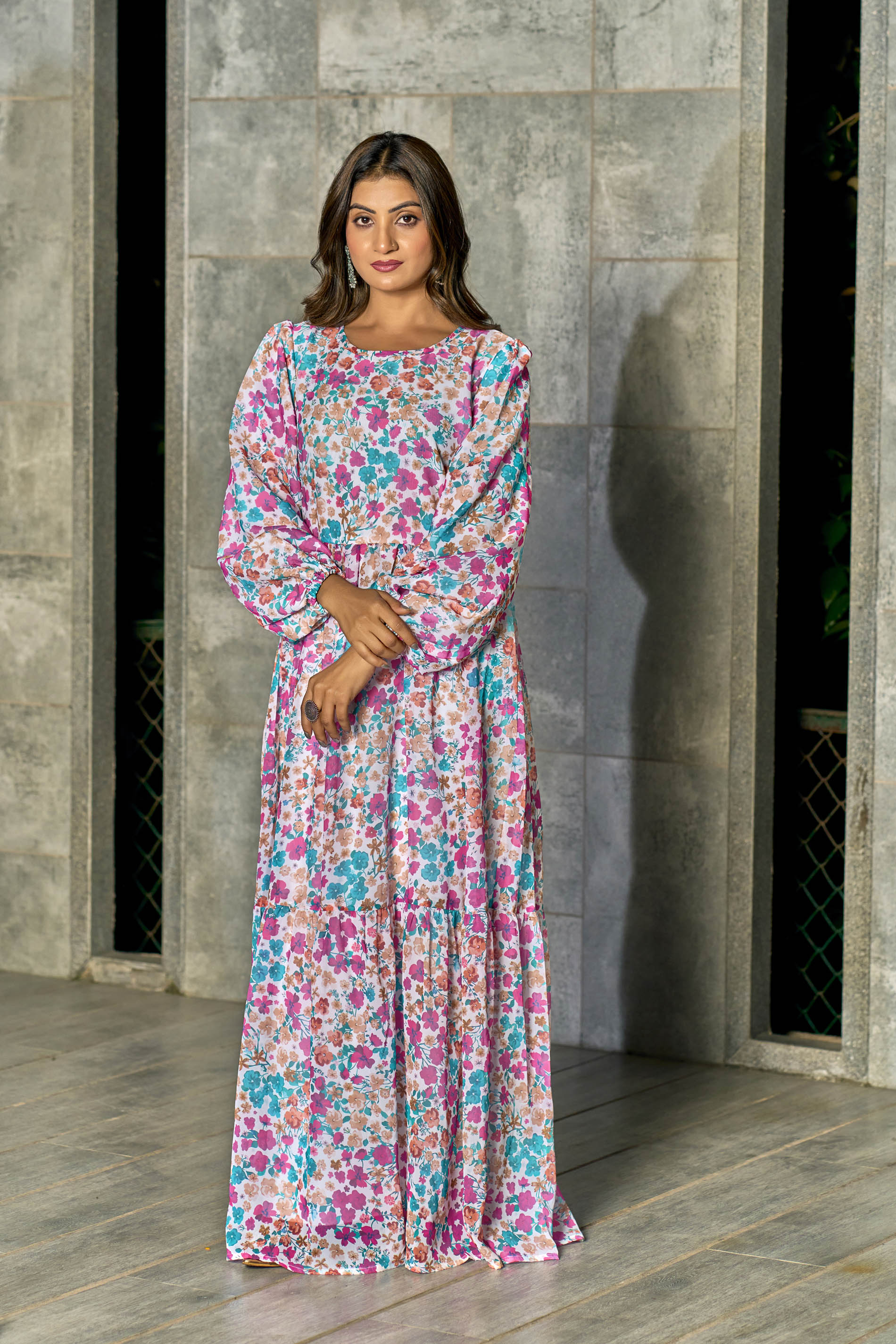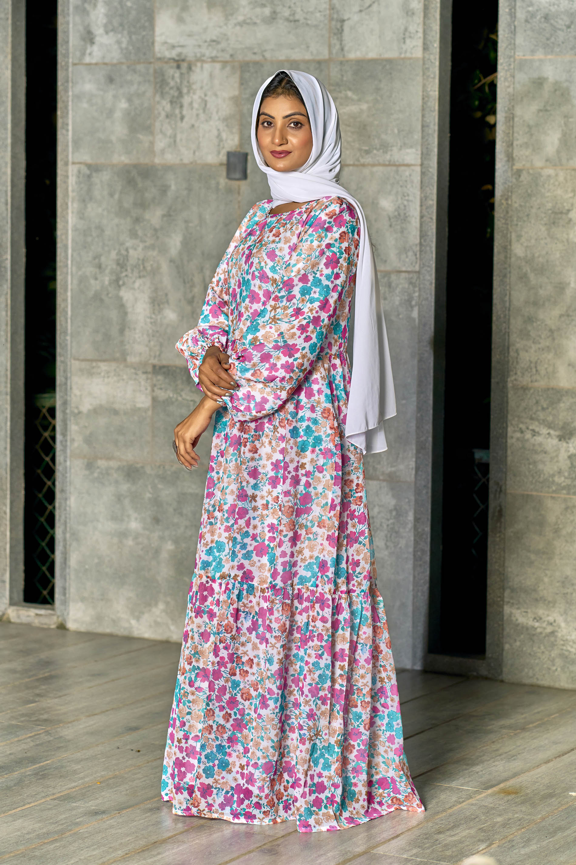 Stylish Floral Printed Georgette Modest Maxi Dress for Women