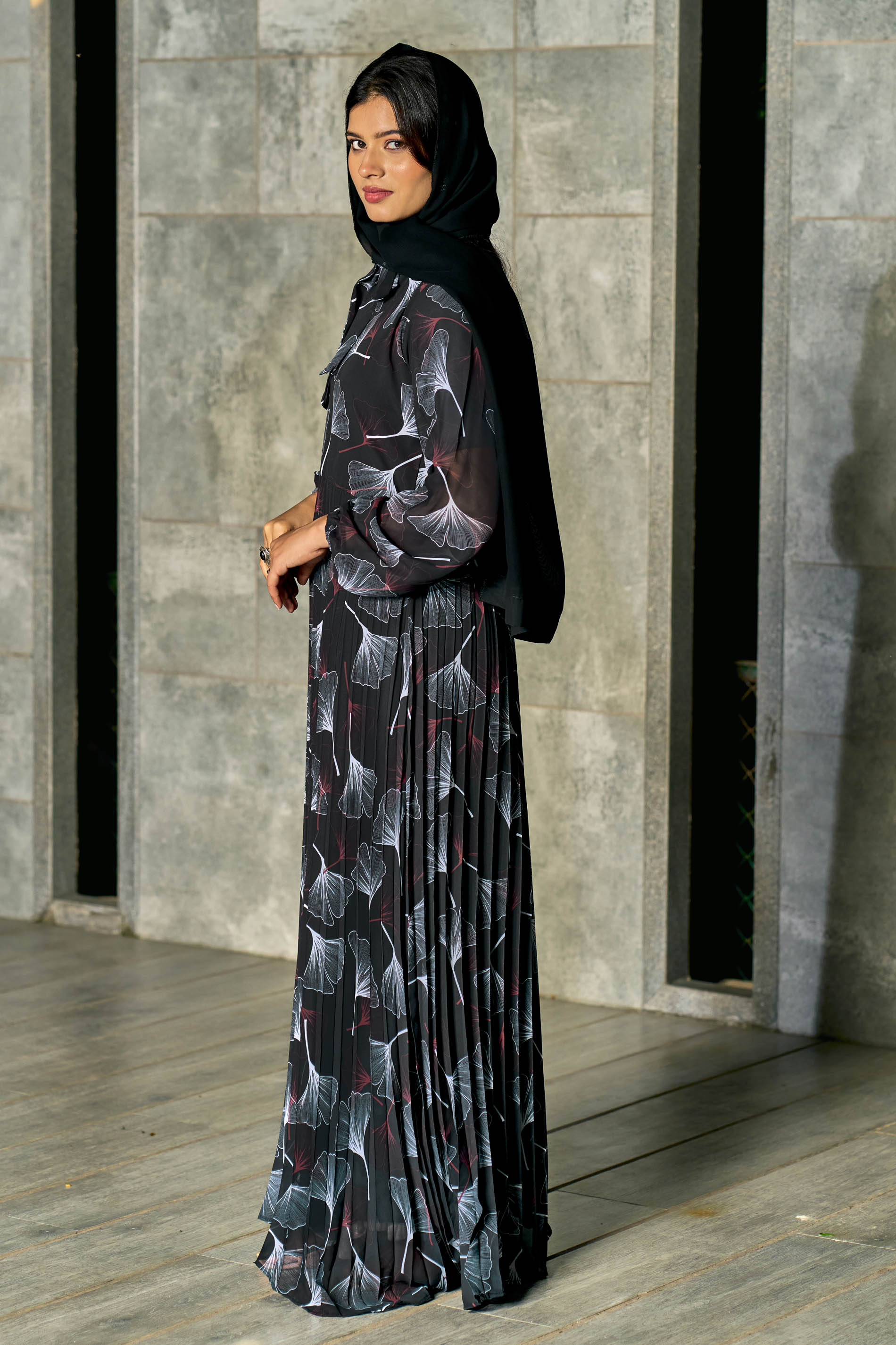 Stylish Floral Printed Georgette Modest Maxi Dress for Women