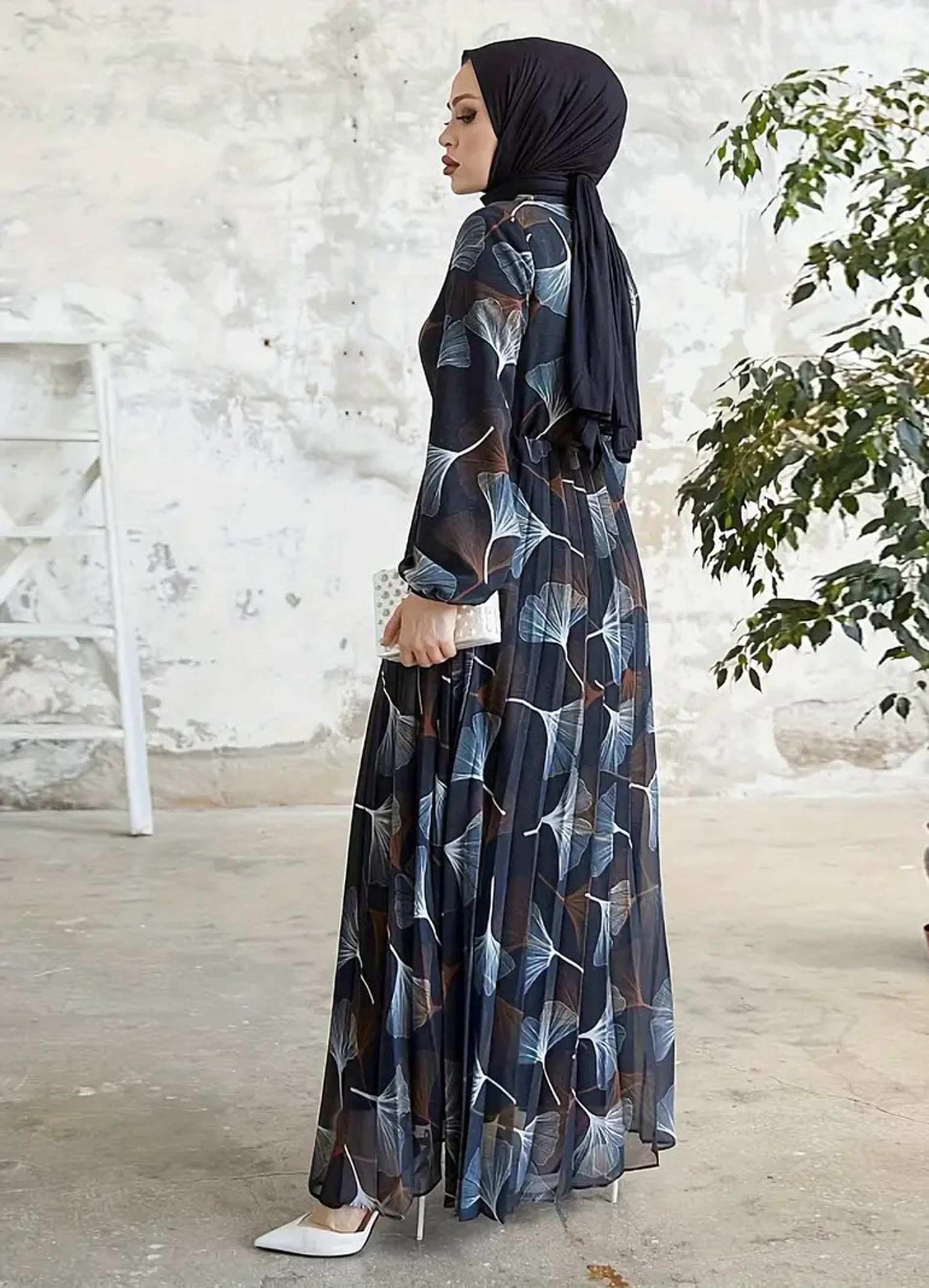 Designer Floral Printed Maxi Dress | Modest Fashion Long Sleeve Gown for Women