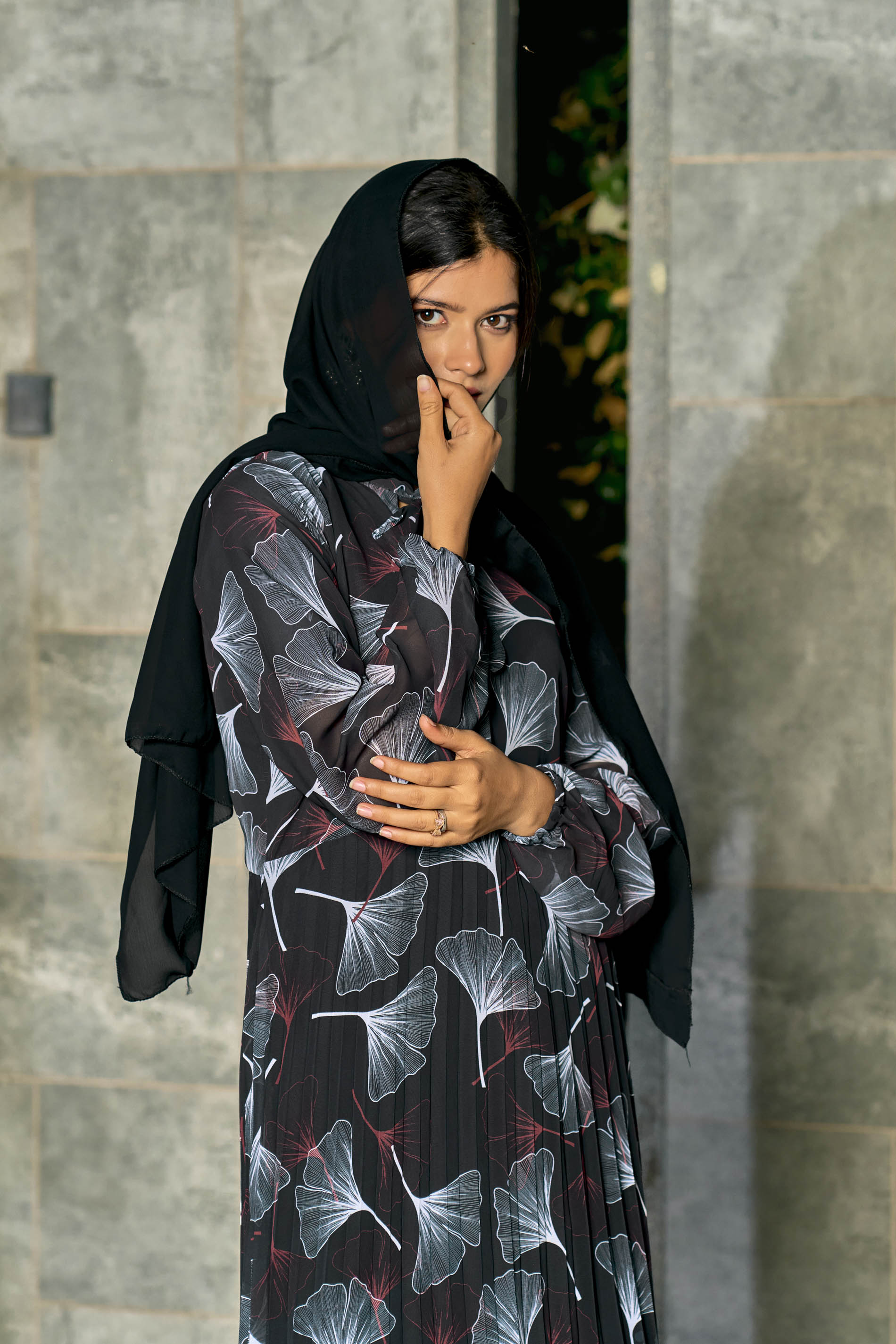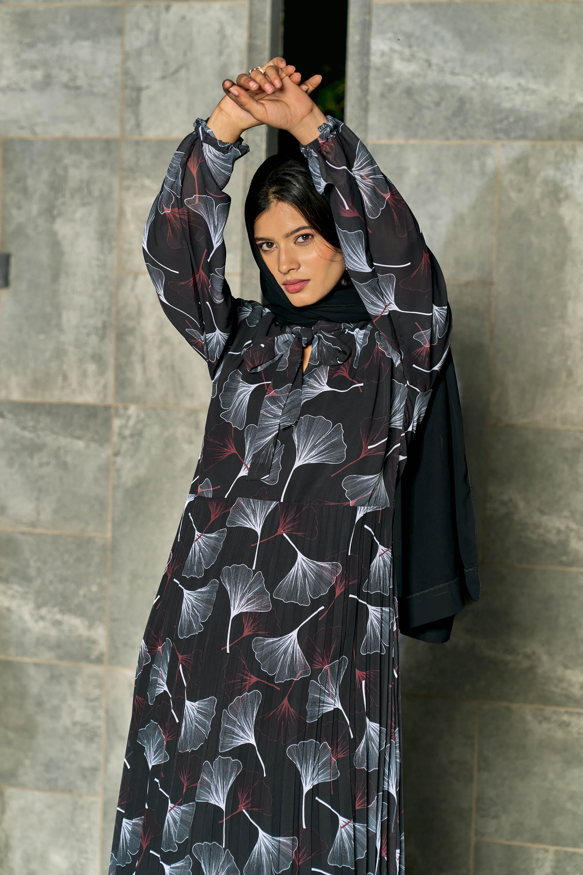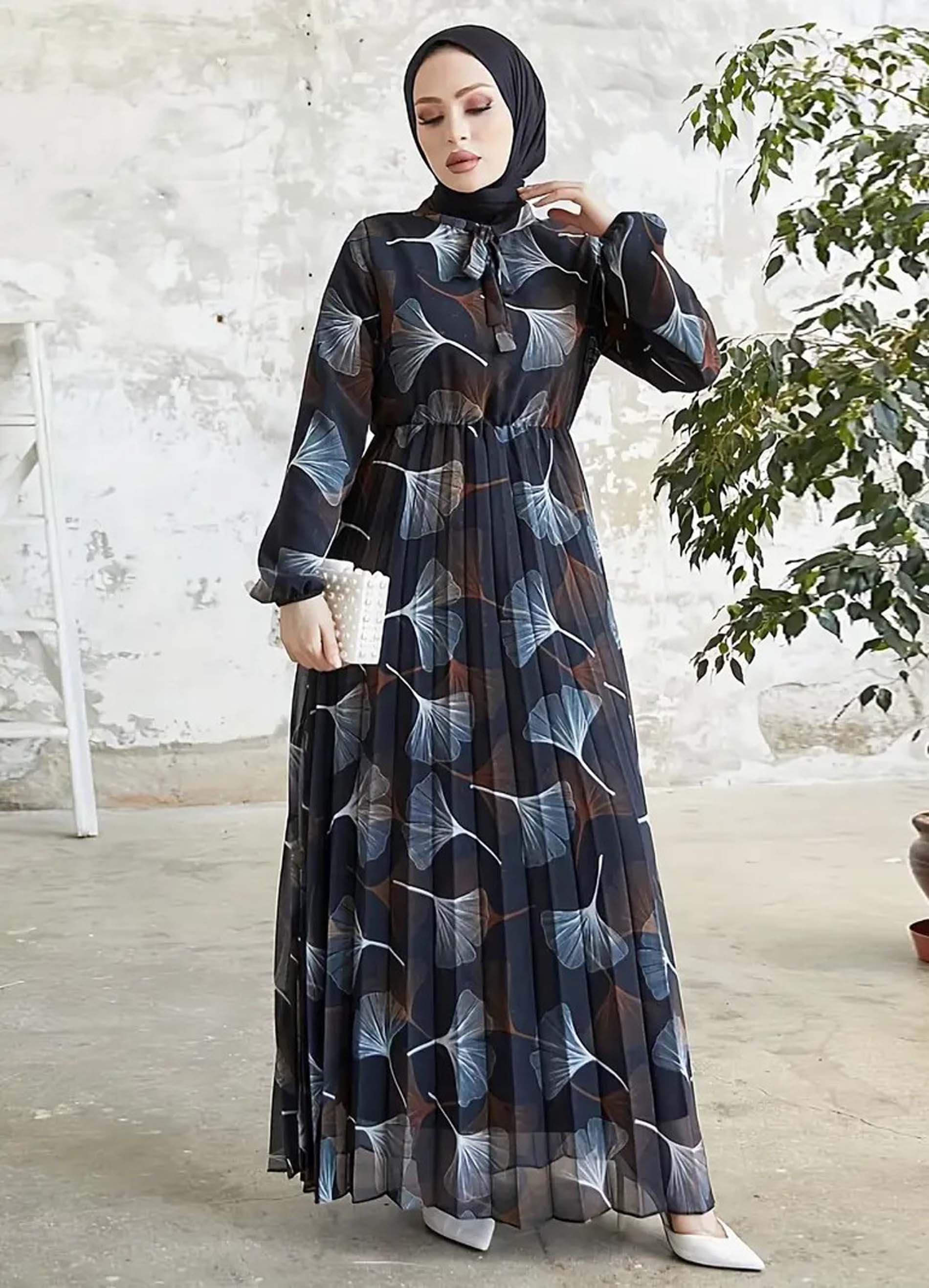 Multi-Color Abstract Print Maxi Dress – Modest Full Sleeve Abaya for Women